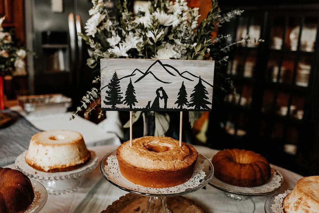 I'm a frosting snob. Not afraid to admit it. Not a big fan of bakery frosting. Plus, we were on a tight budget, and even if we weren’t, not many wedding cakes can survive that many miles up a gravel road, anyways. So that pretty much ruled out traditional cake. Instead, our moms made pound cakes, and we topped them with sugared peaches and strawberries, and they were delicious. We even took some with us to Mexico! No need for frosting that probably also would have melted in the middle of July.